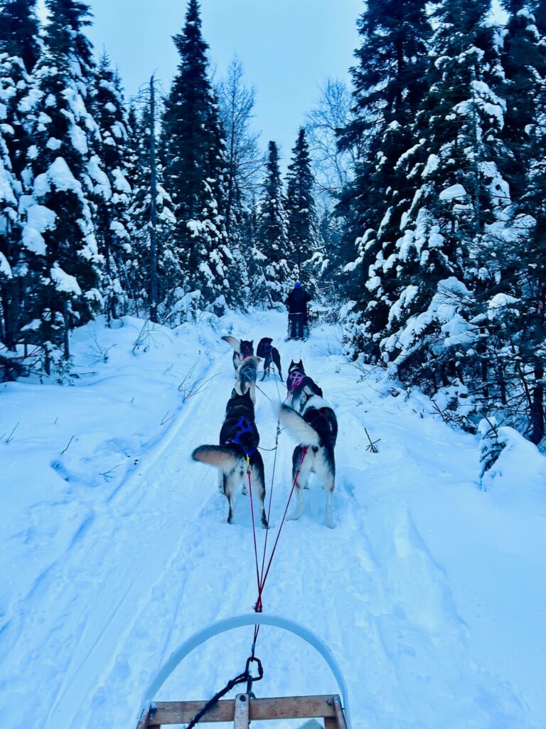 Entre las experiencias complementarias, destaca el trineo jalado por perros husky, una actividad de alto valor emocional que conecta al viajero con el entorno natural de forma auténtica. Aunque representa un costo adicional, se consolida como uno de los momentos más memorables del viaje.